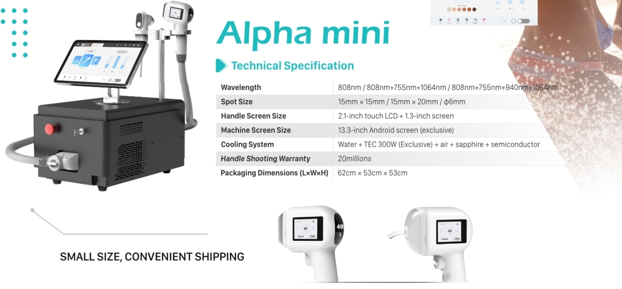 Laser wavelength: 810nm diode laser, 755nm alexandrite laser, 1064 Nd. YAG laser. (Only 1 wavelength 808nm can be selected)