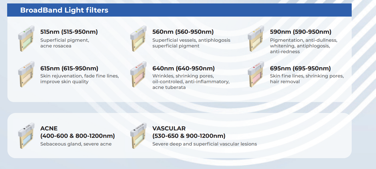 400nm to 1200nm. The technology uses a specifi c wavelength range to target various chromophores in the