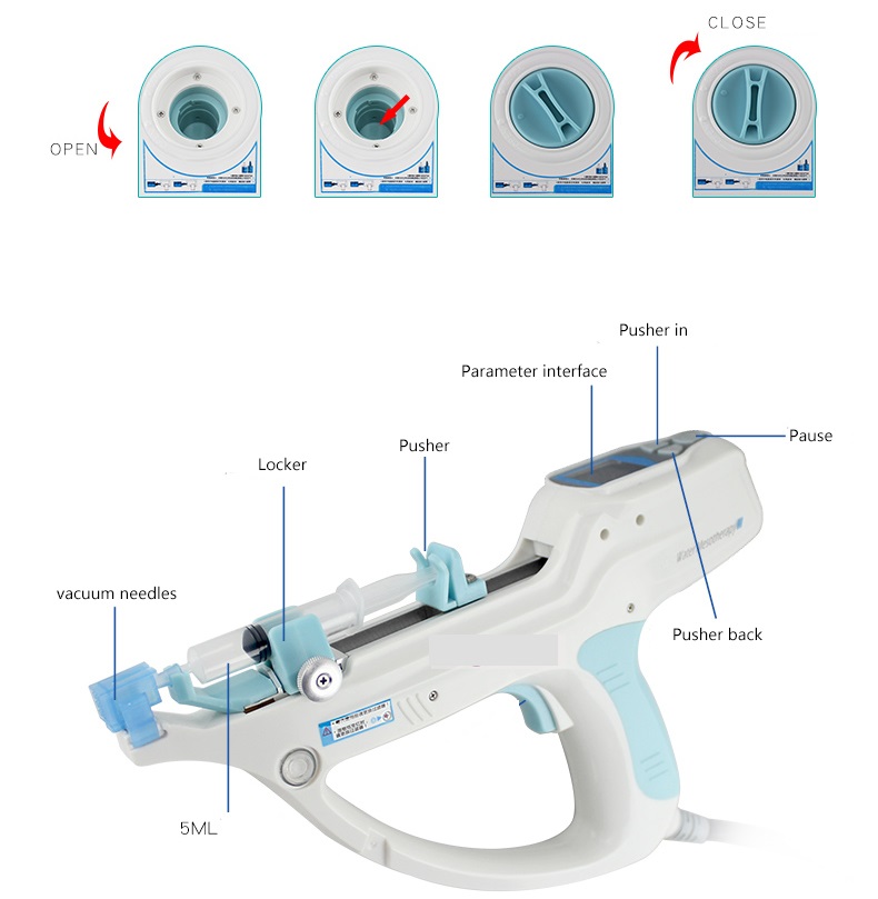 - micro-needle entered.The needle injects nutrients (such as hyaluronic , collagen, PRP, PPC, etc) by using multi-needle sticking in the accurate depth after keeping skin tight.