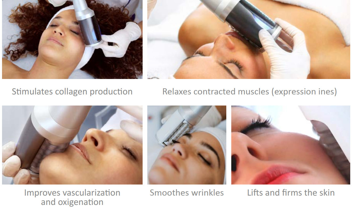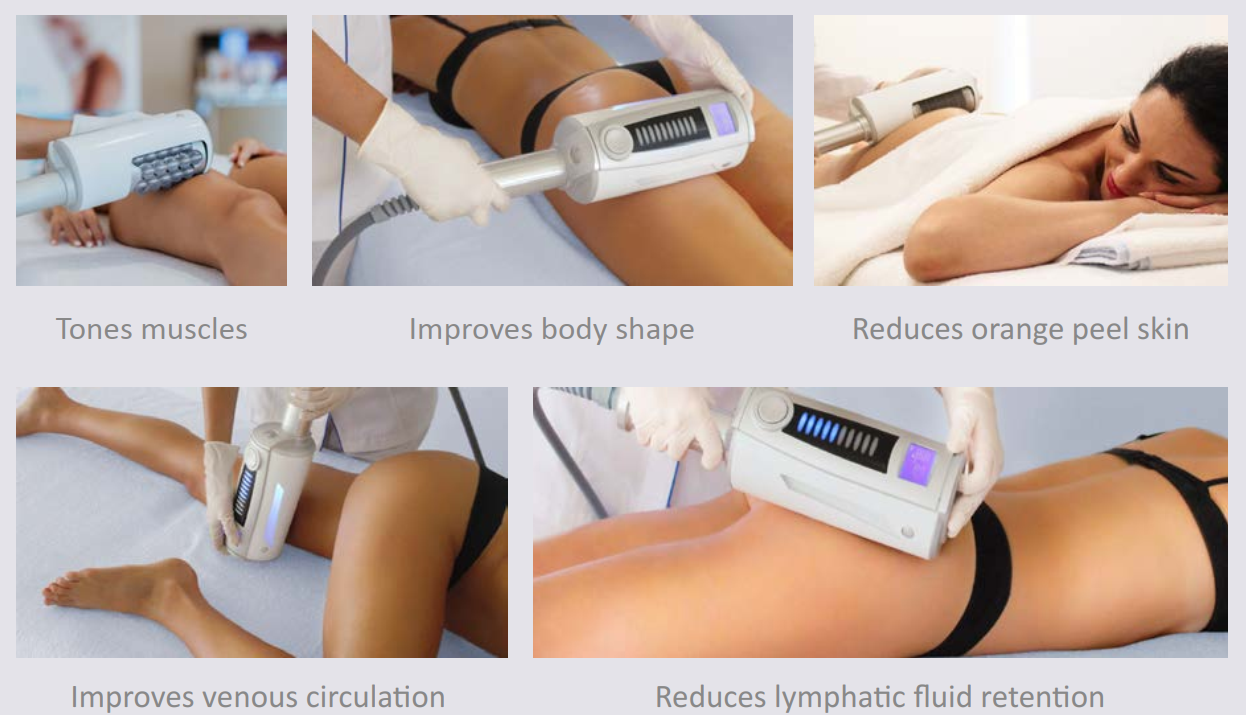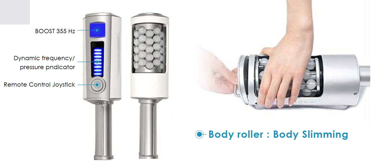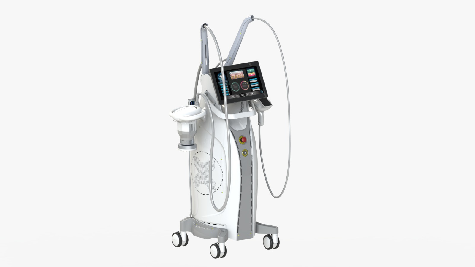 The device combines the latest technologies for cellulite removal, body shaping, and skin tightening using negative pressure, rolling balls, rotation, radio frequency, and photon light.